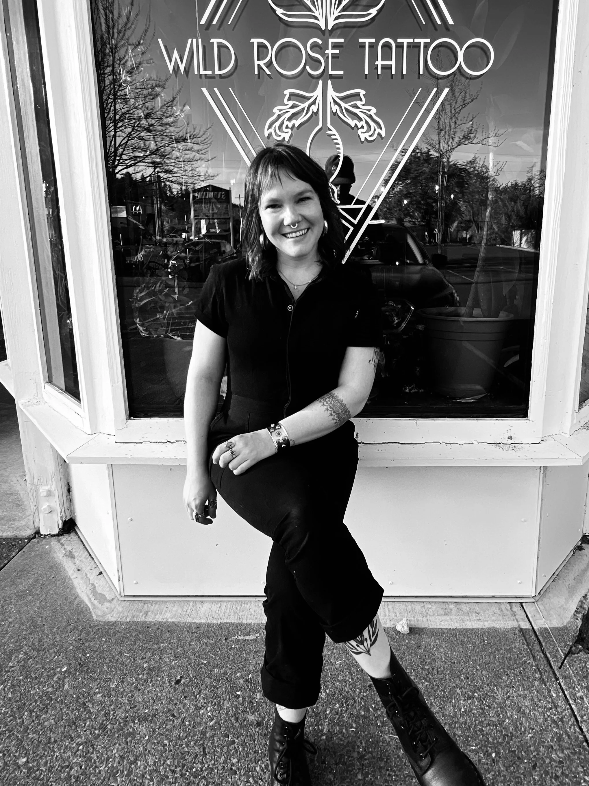She enjoys tattooing vintage flowers, birds, body contouring pieces, and symmetrical motifs.