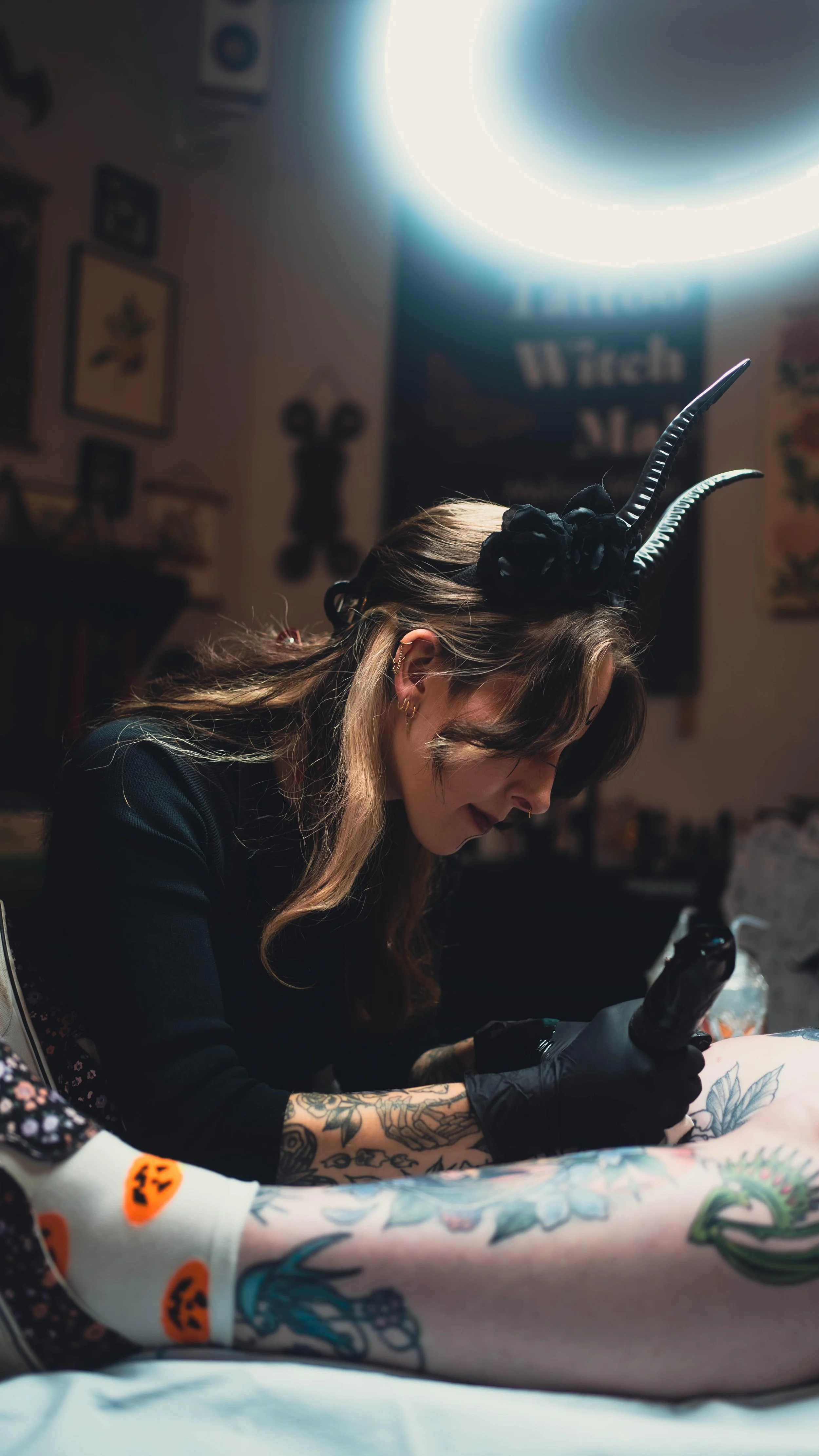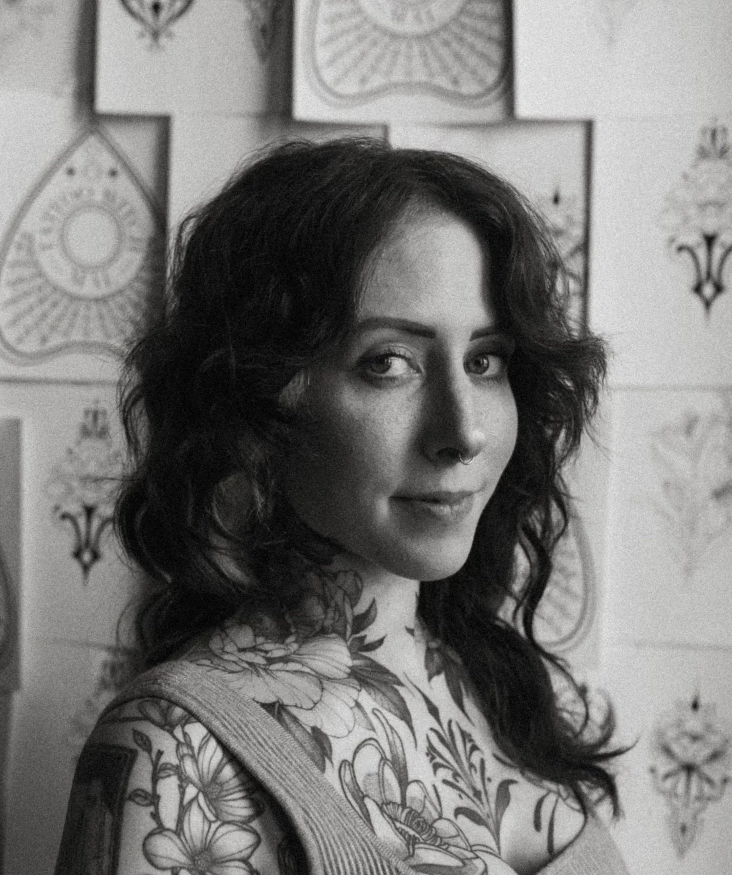 Mallory specializes in black and grey ornamental tattoos as well as illustrative tattoos with realism and vintage style inspiration. She enjoys tattooing botanicals, florals, and animals as well as anything with a spooky, macabre touch to it.